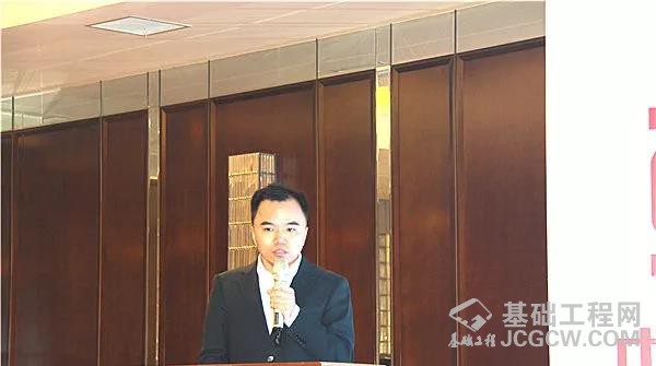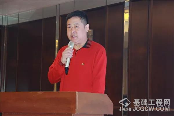 ▲中国工程机械学会桩工机械分会秘书长郭传新致辞