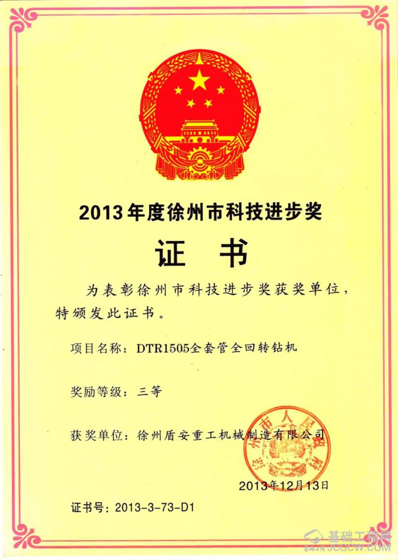 自我国第一台自主研发的具有完全知识产权的填补国内空白的DTR1505全回转全套管钻机2012年在徐州盾安重工下线,经过近7年的发展,徐州盾安重工机械制造有限公司已发展国内专业从事特种工程机械研发、制造、销售服务及帮助客户施工管理的高新技术企业,累计销售全套管全回转钻机100多台,国内市场占有率接近70%,并出口澳大利也、新加坡、马来西亚、台湾、香港、澳门等国家和地区,其中2018年销售全套管全回转钻机成套设备40多台套,销售额超过1.2亿元,成为国际领先的全套管全回转钻机成套设备研发制造基地,被徐州市科技局认定为全套管全回转钻机工程技术研究中心。