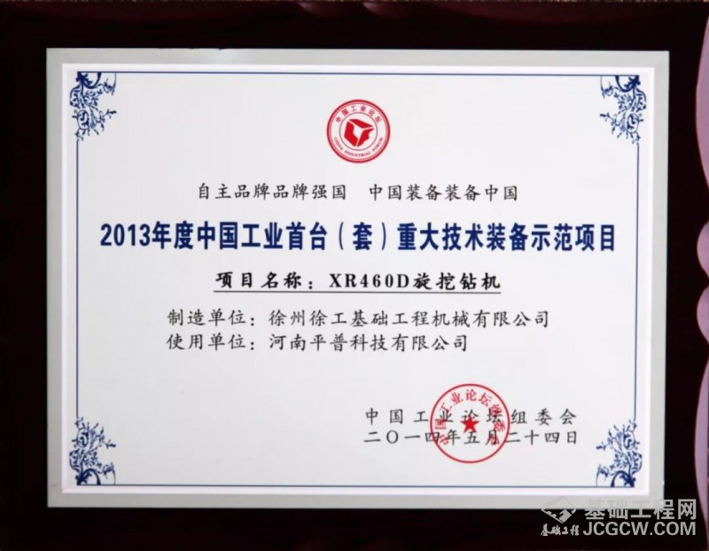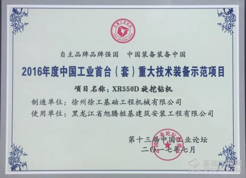2017年徐工基础被工信部和中国工业经济联合会评为“制造业单项冠军示范企业”,是行业首批唯一获此殊荣的企业。