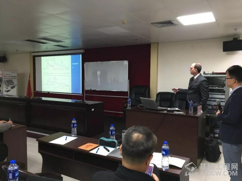 美国桩基动力学公司副总裁Brent博士和欧美大地仪器设备中国有限公司基桩产品部产品经理徐晓林先生先后与参会嘉宾分享了本次会议各项议题,重点阐述了高应变动测和CAPWAP曲线拟合分析软件在海陆深基础工程中的应用,浅析了基桩检测基础理论知识、桩身完整性测试新方法和灌注桩施工质量监控技术。会议议题丰富而紧凑,受到与会嘉宾的欢迎。