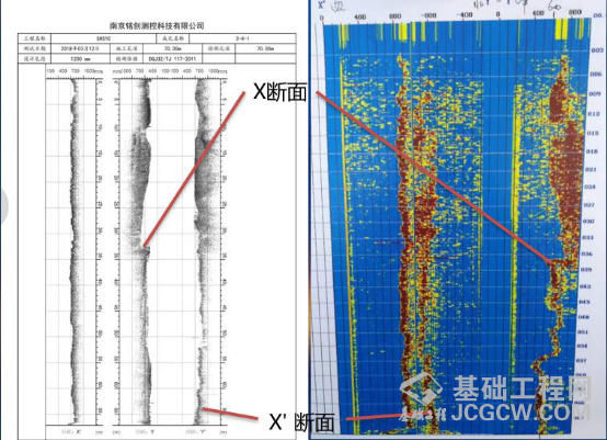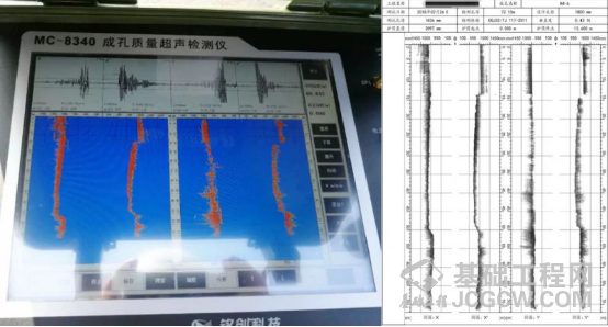 南京某跨长江大桥项目是南京市的重点项目,成孔质量检测采用MC-8340型成孔质量检测仪。由于工期紧,任务重,仪器使用频率很高。通过一段时间的使用,数据真实可靠,得到业主、监理、施工方的一致认可。现场检测数据:护筒轻微倾斜;50米左右有轻微错台。