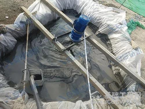 5、钻头离孔端2米,大泵吸清水,1分钟左右提出钻杆。