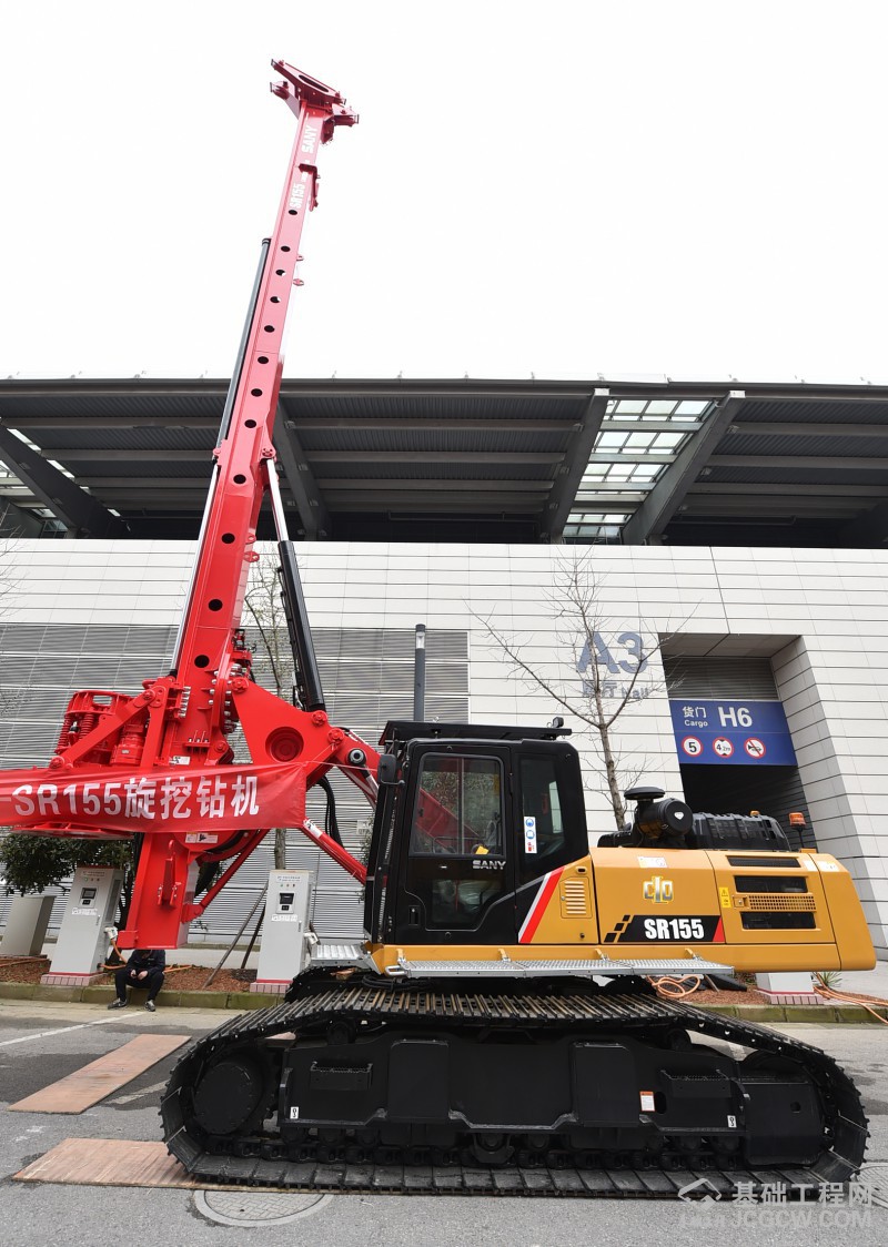热闹非凡的全国首届基础工程装备交易会期间,三一带来了2台SR155旋挖钻机及一台起重机一台履带吊引燃整个会场。