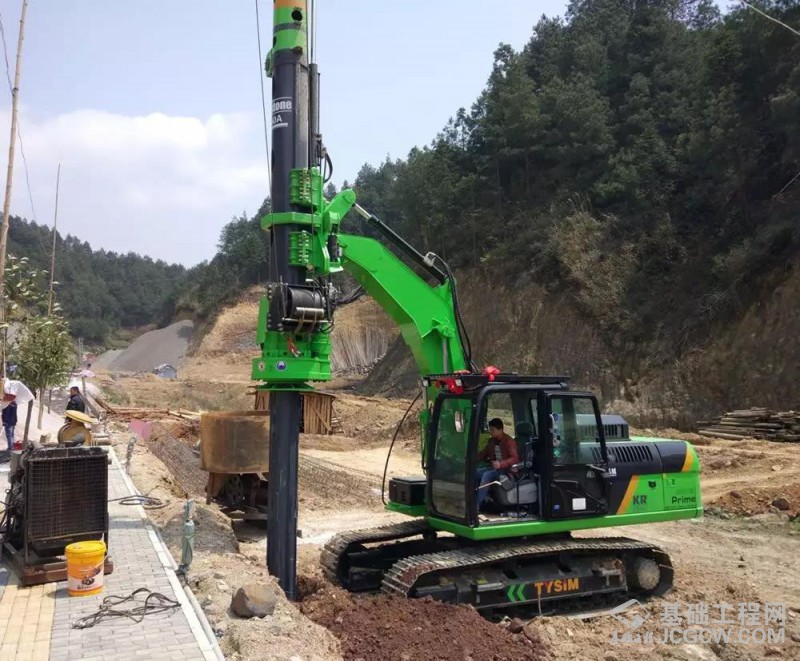 KR50改装底盘可选用15-20t挖机底盘,改装后最大钻孔深度是16-20m,最大钻孔直径为1200mm。