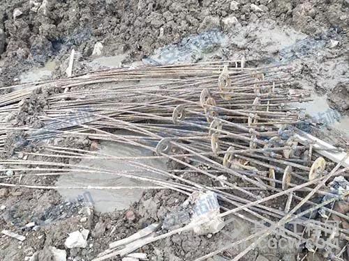 2、将钢绞线穿过锚索盘,用电焊将钢绞线一端扩大焊粗,保证不会受力脱落。