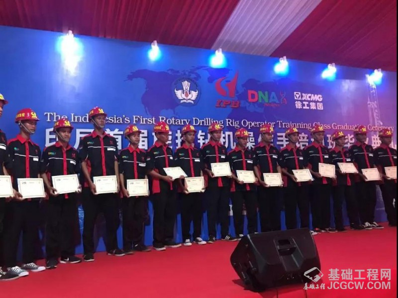 据印尼华人世界电视报道,印尼唐格朗某项目工地上举行了一场别开生面的毕业典礼,毕业的学生是19名旋挖钻机操作手,中国驻印尼大使馆工作人员、印尼文化部等部门的领导为他们颁发了徐工基础和DNA机构授予的操作手合格证和教育认证证书。