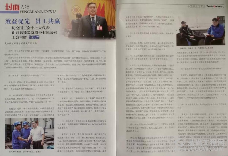近期《中国开发区工会》杂志,也以《效益优先 员工共赢——访全国工会十七大代表》为题,对工会主席张爱民进行了专访报道,并列为封面人物。