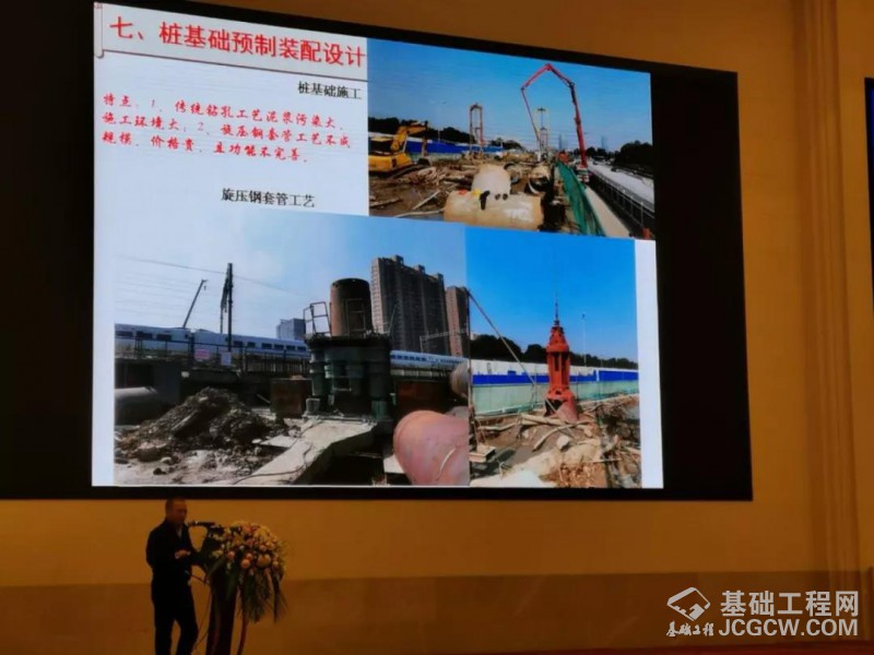 会上,中铁上海设计院集团有限公司,市政工程设计院副总工程师吴志勇作了关于《新型桥梁结构体系与快速化施工关键技术研究》的专题报告,详尽介绍了盾安全套管全回转钻机运用在道桥、城建桩等不同地质工况,不同辅助施工机械的桩基施工程中的实践经验。