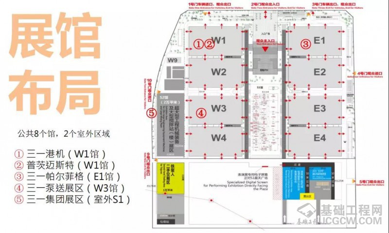 其中,三一集团展区在室外S1区,三一普茨迈斯特和三一港机在W1馆,三一帕尔菲格在E1馆、三一泵送在W3馆。