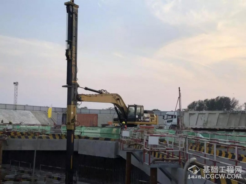 KM260定制型伸缩臂用于卡纳普里河隧道项目东岸工作基坑取土施工。该伸缩臂根据客户及施工要求进行定制,采用CAT340D2L挖掘机底盘,配备加长大臂,作业半径最大8.6米;最大挖掘深度28米,配置1.5方贝壳斗。该工地每天不间断施工,日取土量1000方左右,施工效率得到客户极大认可。