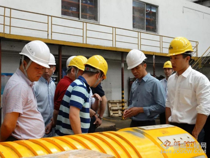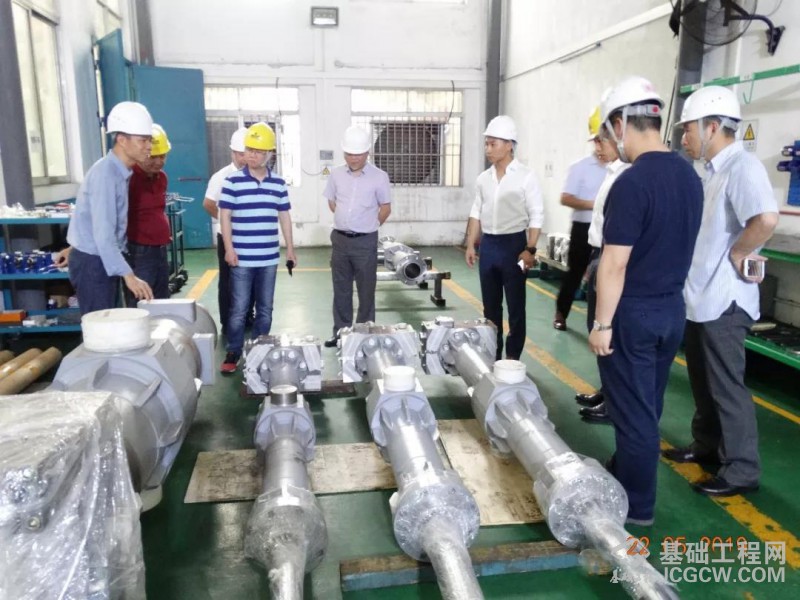 会后,广东力源领导陪同中交三航领导到车间实地考察设备的生产状况,并就根据工程使用要求对设备制作工艺进行深入交流