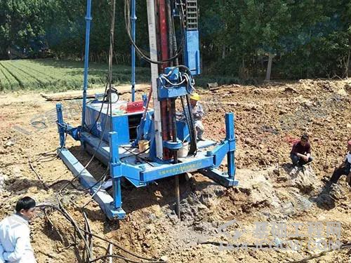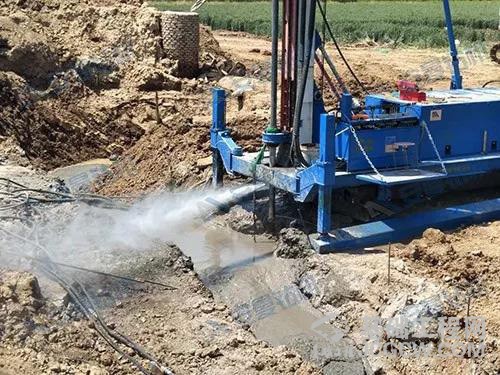 2、启动钻机,边旋转边钻进——防止泥土堵塞喷嘴。水压3~5个兆帕;
