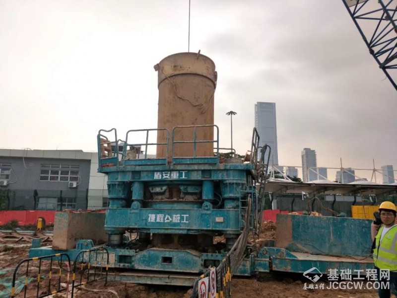 针对此地质工况,项目施工方选用徐州盾安全套管全回转钻机结合凿岩旋挖机成孔工艺,使用特种冲击锤、特制取土器、特种刀头管配置进口刀具和φ1800专用钢套管等配套机具,确保工程顺利进行。