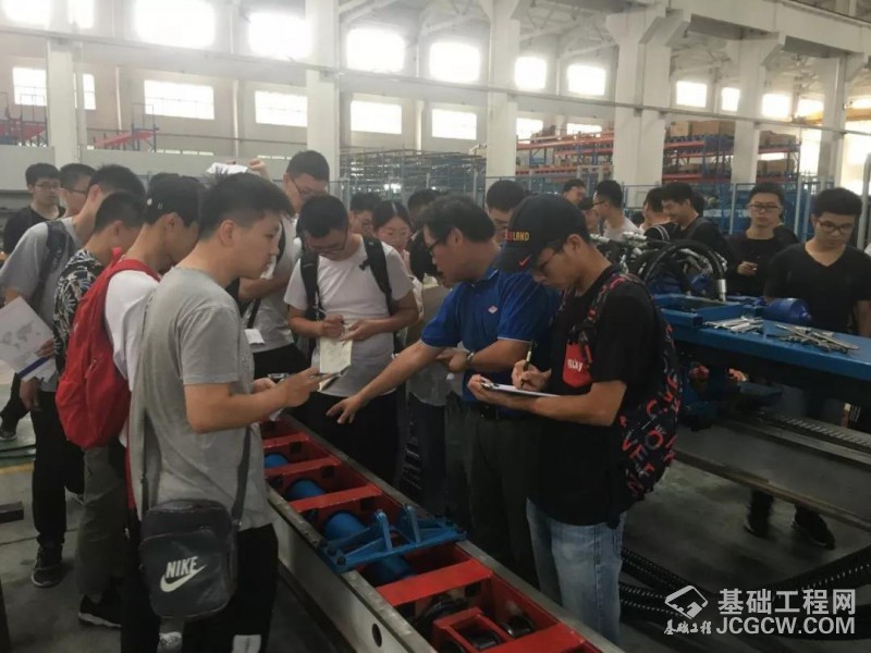 在车间现场,实习学生踊跃提问,锡探工程师借助零部件实物,分别从机器原理、材料、加工工艺、装配调试工艺等方面一一讲解,学生们均表示受益非浅,在平时学习过程中遇到的一些抽象原理和模糊概念都一一得以解惑。