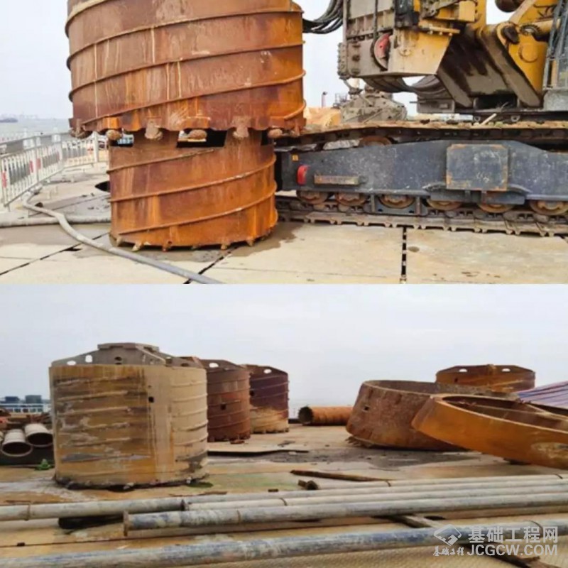 该工法单台旋挖钻机需配备4~5个不同规格和形式的钻头,在旋挖钻进时需不断更换钻头,操作虽复杂,但具有入岩效率高,成孔垂直度好等特点。