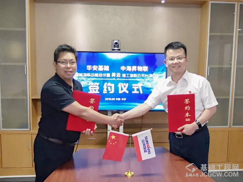 2019年6月27日,江苏中海昇物联科技有限公司与山河智能装备股份有限公司(证券代码:SZ002097)旗下华安基础举行战略合作签约仪式暨昇云基础施工物联云平台项目启动仪式,中海昇物联创始人兼总裁张海滨先生、华安基础总经理兼山河智能工法研究所所长丁曲先生分别代表双方项目团队出席签约仪式。