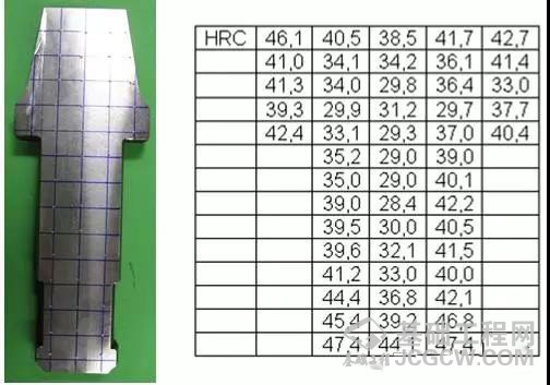 宝峨截齿采用优质的钢材,且都有回火过程,因此该钢材可达到高硬度。上图为宝峨截齿的剖面,以及该截齿每个部位的硬度值,可以看到各部位的钢材硬度都比较高。