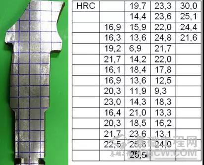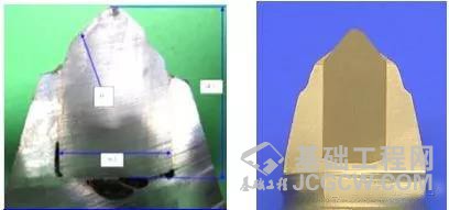 而如果选用的钢材材质不佳,或者没有经过正确的回火工艺,则该钻齿的剖面可能呈现上图的情况,可以看到该材料硬度比较低,而且硬度不均匀。如钢材的耐磨性差,断裂风险将提高,还可能会出现下图的情况: