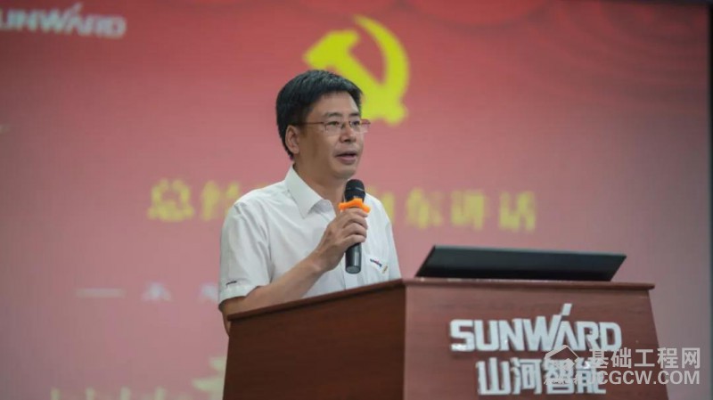最后,公司总经理付向东发表重要讲话。付总阐述了党的伟大成就,以及山河智能在董事长何老师带领下取得的可喜成绩。他要求公司各级干部、骨干加强党的政治建设,发挥党组织的政治核心作用,把党组织建设成为带领群众、拼搏进取、稳定发展的战斗堡垒;要求激发全体员工早日实现山河百亿腾飞目标而努力奋斗的积极性,紧盯“时间过半、任务过半”,制定切实有效的下半年工作计划和实施方案,确保公司年度经营目标的实现;要求不忘初心,牢记使命,高举习近平新时代中国特色社会主义伟大旗帜,坚定信心,增强本领,开拓创新,拼搏实干,夯实历久弥坚大基础。