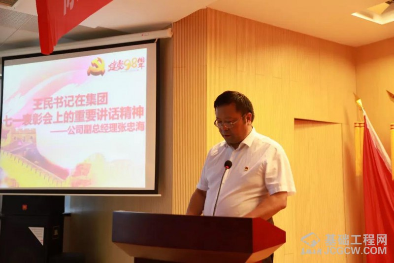 会议由公司副总经理张忠海主持。会议在庄严的国歌声中拉开帷幕。张总首先传达了集团王民书记在徐工庆祝中国共产党成立98周年暨总结表彰大会上的讲话精神。