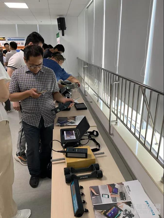 现场展示了新型打桩分析仪PDA-8G、桩身完整性测试仪PIT-Q以及超宽频步进频率手持雷达GPR Live、超声波阵列扫描成像仪pundit live array pro、手机进行数据采集的云端版回弹仪Original Schmidt Live N等设备,吸引了众多参会人员前去观看和咨询。