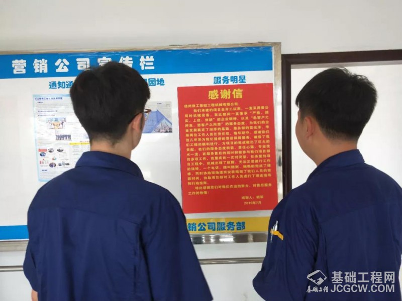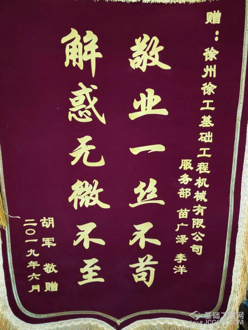 6月27日上午,重庆酉阳的徐工掘进机用户胡军,不远千里专程来到徐工基础服务部,送来了感谢信及锦旗,感谢两年多来一直在施工项目上给予他们技术支持的服务部员工苗广泽、李洋的“敬业一丝不苟 解惑无微不至”。