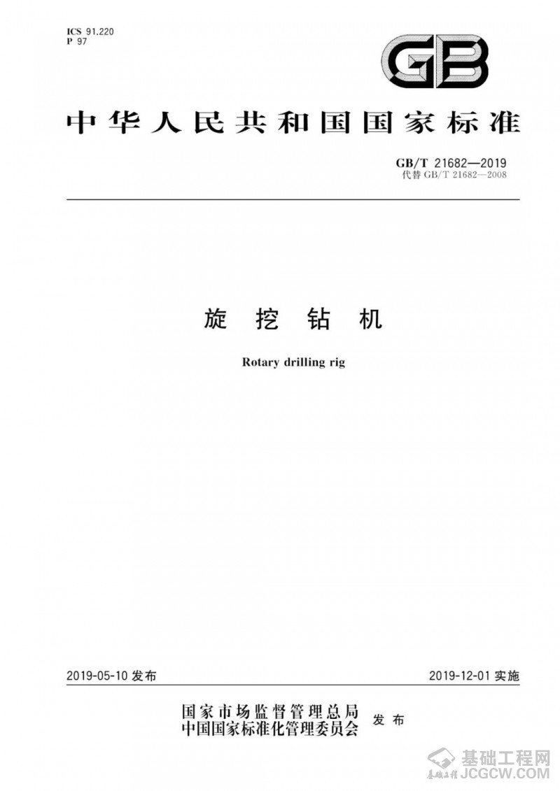 5月10日,国家市场监督管理总局联合中国国家标准化管理委员会共同发布了中华人民共和国国家标准《旋挖钻机(GB/T 21682-2019)》,该标准将在2019年12月1日全面实施。