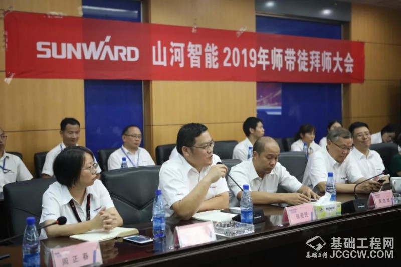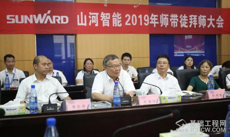 2019年7月22日上午9点,山河智能2019年师带徒拜师大会在技术中心206会议室举行,本次师带徒拜师大会是公司实习生精细化培养项目的开端。董事长何老师、公司领导付向东先生、黄志雄先生、张爱民先生、高级顾问易宇欣女士及各实习生用人部门领导、导师、徒弟 共50余人参加拜师大会。