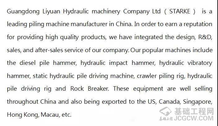 广东力源液压机械有限公司是中国领先的桩基础施工装备服务商,属工程机械行业,成立于1993年,二十多年来一直专注于桩基础施工的系列重型机械的研制,自主研发、制造柴油打桩锤、液压打桩锤、全液压静力压桩机、履带打桩机、液压振动锤、步履桩架、矿山锤、潜孔锤等8大系列百余款产品,荣获国家专利40余项,产品广泛用于建筑、桥梁、海洋、水利和码头等各类工程桩基础施工。