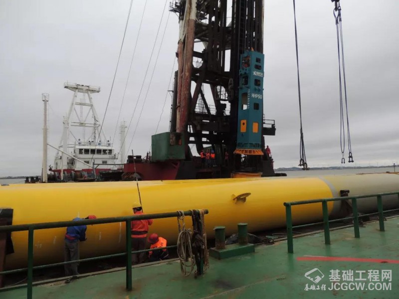 作为宁波舟山港主通道的重要组成部分,舟岱跨海大桥起于岑港互通,路线向北延伸,在马目山入海后转向东北,依次跨越长白西航道、舟山中部港域航道和岱山南航道,在岱山双合登陆,海中设置长白互通,连接长白岛,全长16.34公里,整个施工期约为45个月,预计2021年建成通车。舟岱跨海大桥的桥墩采取配套大型液压打桩锤锤击永久性防腐涂层钢管桩,再进行钢筋混凝土浇注而成。各墩位钢管桩由直径1.6米、1.8米、2.0米;长度76米~106米;重量73吨~103吨,采用斜桩锤击植入。