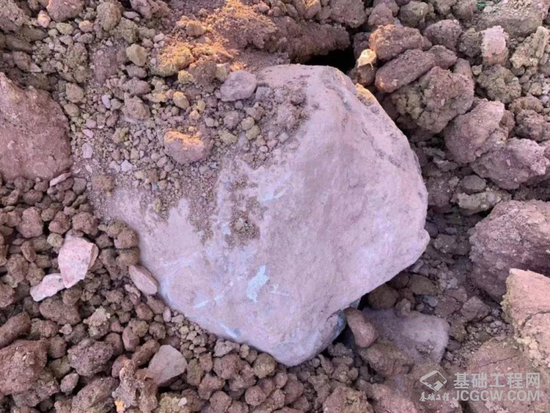 图为该现场钻出的坚硬岩石。