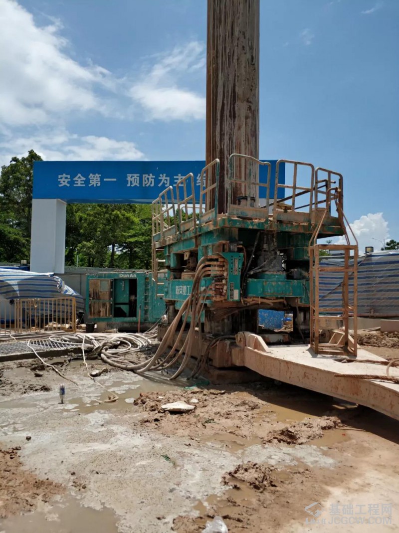 2018年7月,深圳恒大中心基坑支护工程目,徐州盾安全套管全回转钻机创造了桩深超过50m,最大开挖深度42m咬合桩施工纪录,再一次刷新了徐州盾安全套管全回转钻机咬合桩施工纪录。