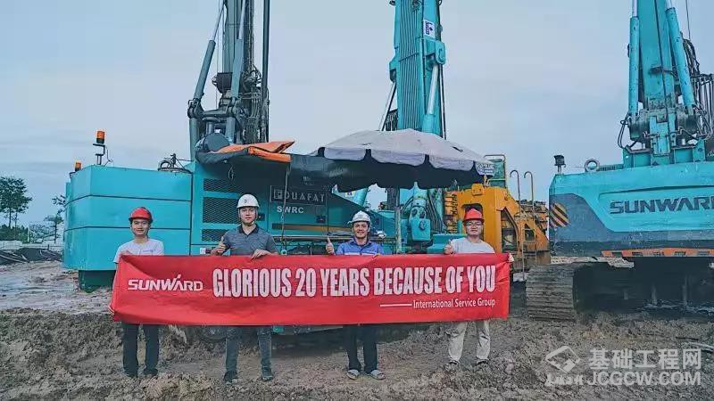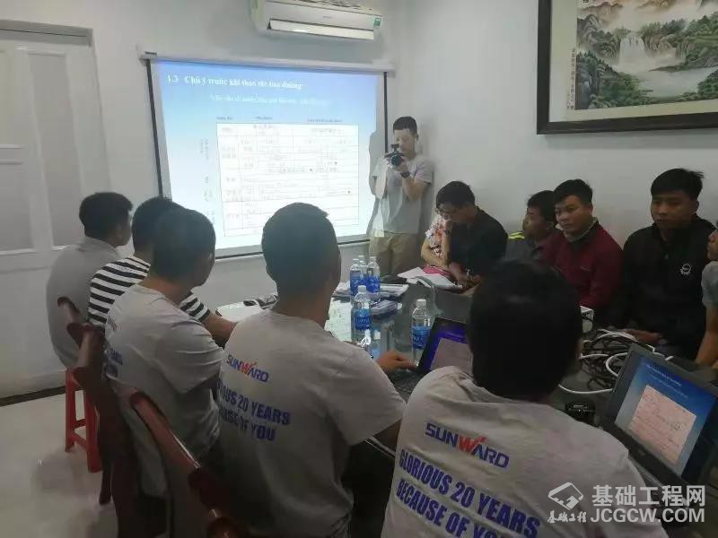 经过一夜的休整,第二天清晨山河智能服务团队一早便整装出发,奔赴越南河内VINCITY GIA LAM工地,见到了驻扎在工地上施工的山河客户。据了解,这位客户是山河智能在越南北部最大的桩机客户,拥有超过40台的山河智能液压静力压桩机。多年来与山河智能合作融洽,建立了长期稳定的良性关系。