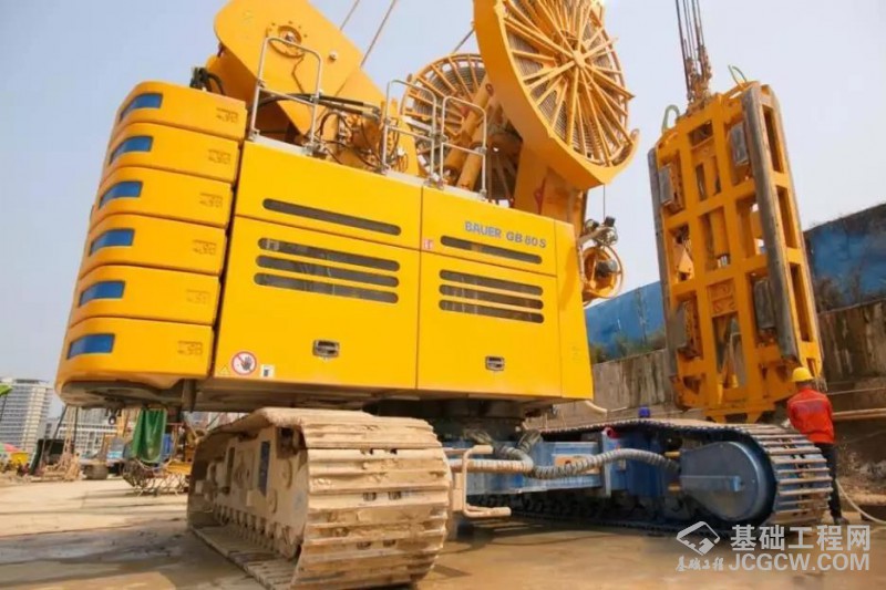 为了加快项目的进展,7月份北京中建西诺地下工程有限公司又租赁了一台宝峨GB 50液压抓斗(见上图),这台设备为湖南恒磊基础工程有限公司2017年购买,至今已运行6000多小时,仍然保持优异的设备性能,在致密的卵石地层表现了成槽速度快、油耗低的良好性能。