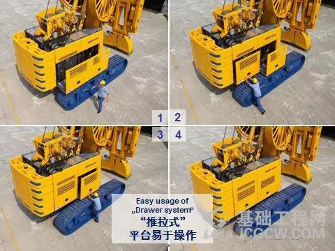 上图为宝峨GB 80 S和GB 50抓斗都采用一体化服务平台,机舱宽大,散热性能好,维修人员可以方便地对各个部件进行修理。