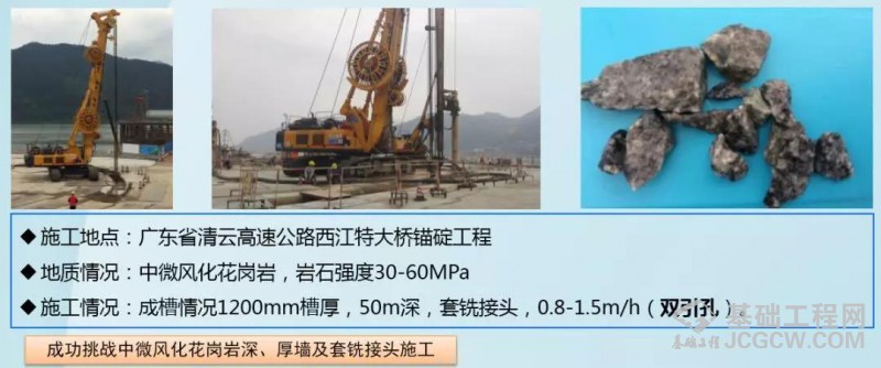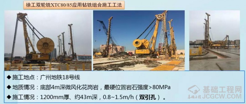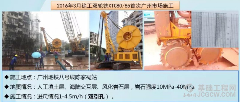 2015年12月,徐工基础结合市场和用户需求对双轮铣进行改进,研制了多功能双轮铣槽机XTC80/55,改变排渣方式,更加环保节能和经济。2016年3月,徐工双轮铣槽机又一新型号XTC80/85诞生,在广东肇庆清云高速西江特大桥项目中,运用套铣工法,成功谱写了槽厚1.2m、深度53m、花岗岩的施工记录。之后,徐工双轮铣或单打独奏、或与徐工连续墙联合施工,先后在深圳、济南、昆明、杭州等地成功施工,并打入国际高端品牌客户群。