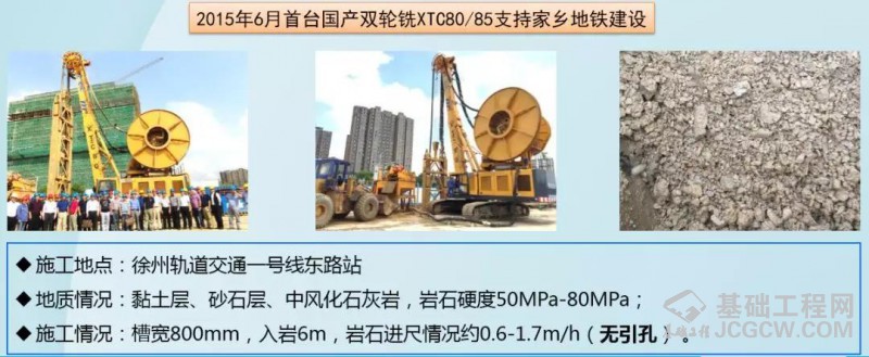 2015年6月,中国首台徐工TC80型双轮铣槽机成功下线,填补了国内施工空白,改变了之前施工完全依靠国外双轮铣槽机设备的局面。徐工首台双轮铣与连续墙在徐州地铁联合施工,得到施工单位中国铁建集团的赞赏和广泛推广。