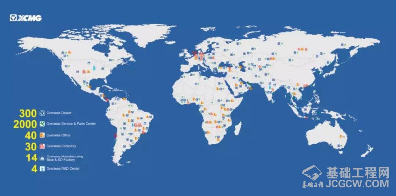 徐工坚持走国际化道路,产品远销183个国家和地区,在其中35个国家的出口占有率居第一;拥有巴西制造基地等15个全球制造基地、KD(散件组装)工厂及合资企业,并购德国施维英等3家欧洲企业,年出口总额持续多年居中国工程机械行业前列,成为中国装备制造产业走向世界的新名片。