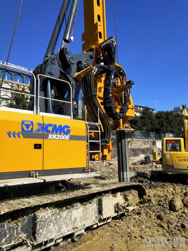 徐工XR200E旋挖钻机搭载业内同级别设备最大液压系统配置,动力头最高输出转速可至30r/min,主卷扬带载下放速度70m/min,主卷扬带载提升速度达到50m/min,在提高参数值的同时,优化控制策略,让设备在不同工况始终处于最佳状态。在石家庄某工地,设计桩深35m左右,桩径600㎜,主要地层为土层,入强分化岩2-3m,每天工作10小时可完成8-10根桩,日产值3万多元。在湖北襄阳某工地创造10小时完成26个直径600㎜、深15m桩孔的记录。