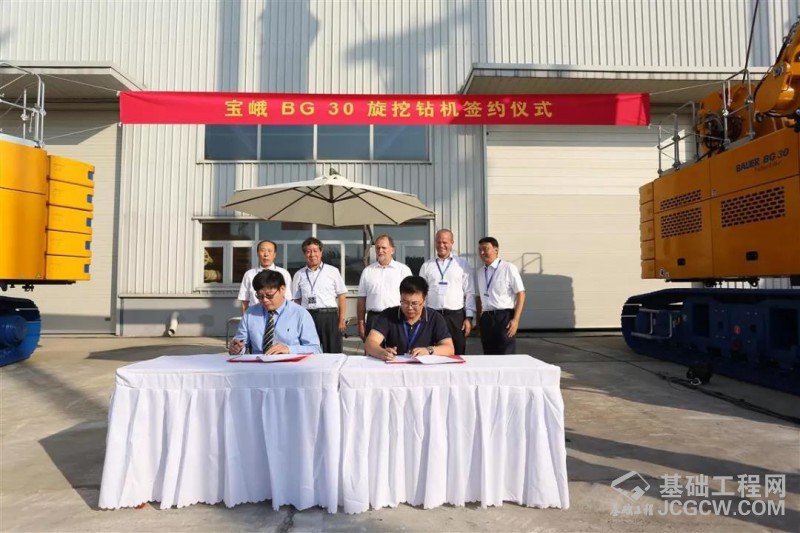 图为与南京铁义华基础工程有限公司签署BG 30旋挖钻机采购协议。