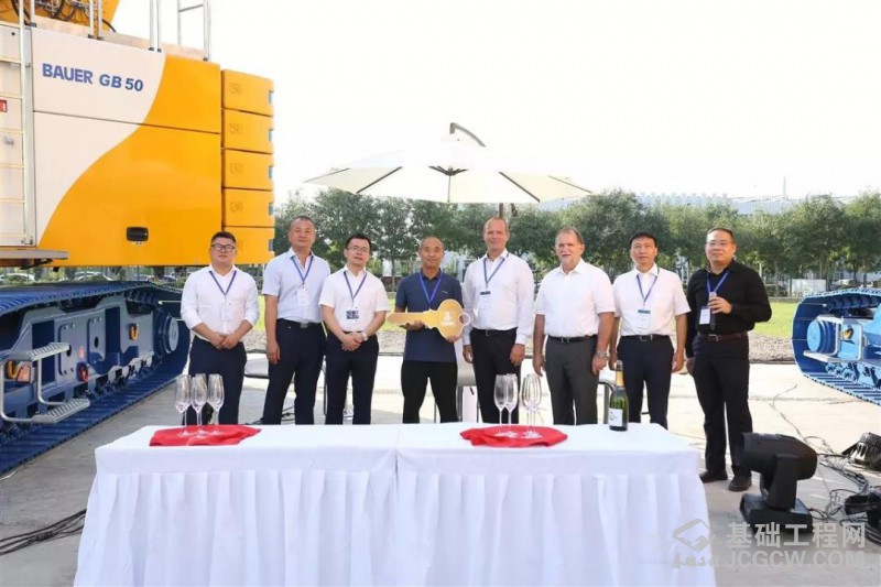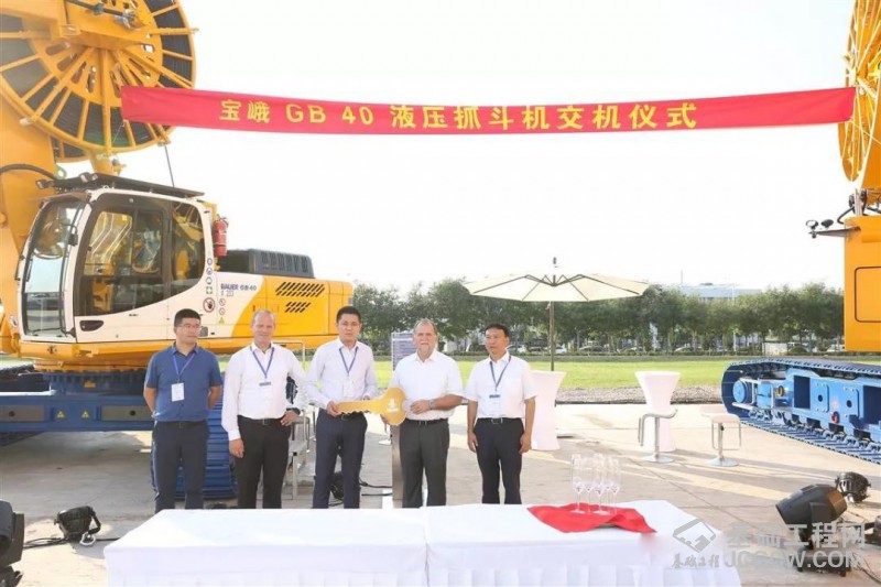 下午16点,在设备展示区举行三场交机仪式,德国宝峨远东区总裁Dieter Stetter先生、宝峨中国区执行董事Marc Scheib先生一起将向客户交付了CSM 35双轮铣深搅设备、GB 80 S液压抓斗以及GB 40液压抓斗。