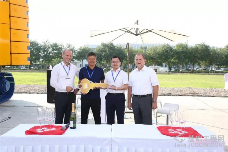 图为向购买CSM 35双轮铣深搅设备的江西秉信工程机械有限公司交付“钥匙”。