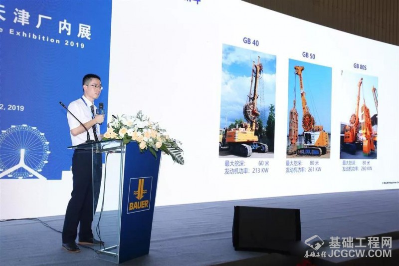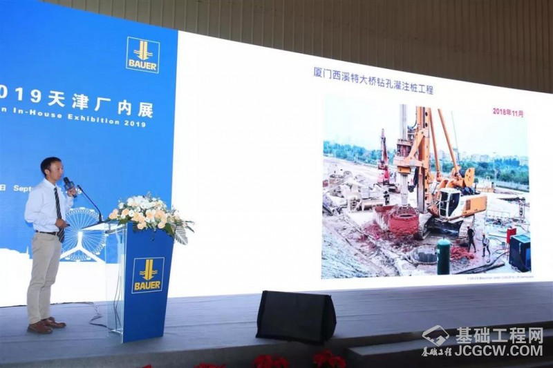工程部经理付忠先生介绍了宝峨旋挖钻机在不同的施工项目中的应用情况,与来宾们分享了厦门西溪特大桥钻孔灌注桩工程和南京地铁7号线西善桥站咬合桩工程这两个施工案例。