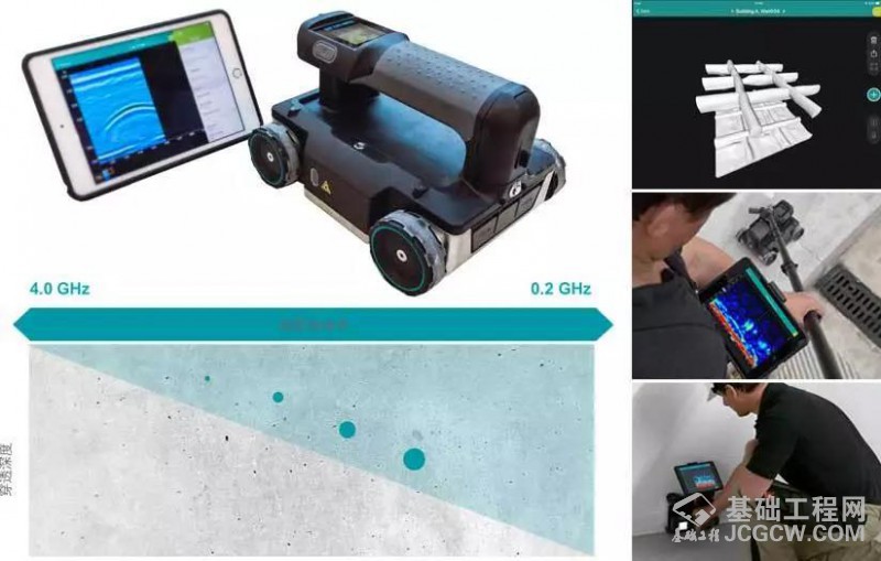 GPR Live Pro是一款新型手持式钢筋混凝土雷达,它采用超宽频步进频率技术,频率范围从0.2GHz~4GHz,测试范围大大加深,而分辨率提高。能探测钢筋、管道、缺陷、板厚等,此外还能测第二层钢筋以及灌浆密实度。采用iPad采集数据,和探头无线连接,设备轻巧,大大加强了现场适用性。其软件能够自动标记不同种类的缺陷,并能进行内部钢筋三维成像。