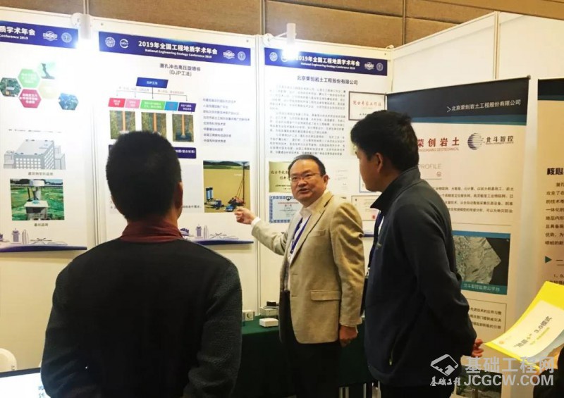 会议同时举办了新技术、新设备展会,来自国内外十余家著名企业参展,荣创岩土自主研发的“DJP工法”、“钻扩工法”、“北斗智控系统”等创新技术亮相展会。公司自主研发的三项岩土工程技术,为解决复杂地质条件下的岩土工程技术难题提供了全新的解决方案,引起了与会行业同仁的极大兴趣,多位参会代表结合工程中的具体问题进行咨询和探讨,均表示公司的这几项技术在工程应用中能够发挥很大作用。北斗智控公司展示的高精度北斗导航定位技术、无人机航空摄影测量与三维建模技术等技术,可以为地灾防治决策提供有力、有效的技术支撑,对地质灾害预测技术革新具有推动作用。展会现场吸引了众多行业同仁驻足交流,得到了参会代表的关注和认可。