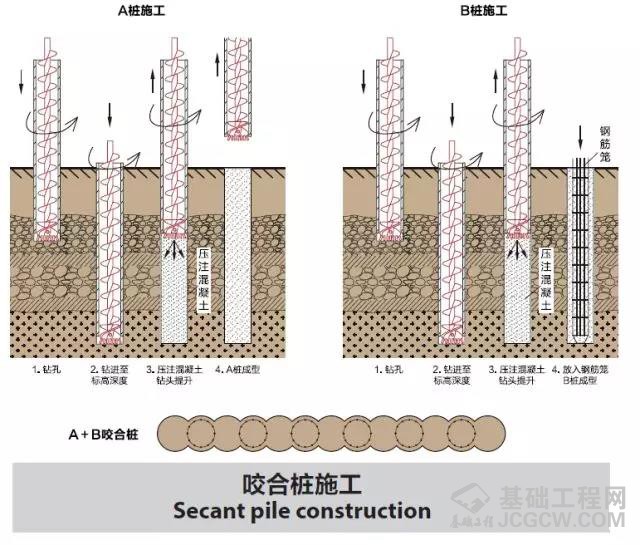 (钢筋笼植入、水泥浆灌注)