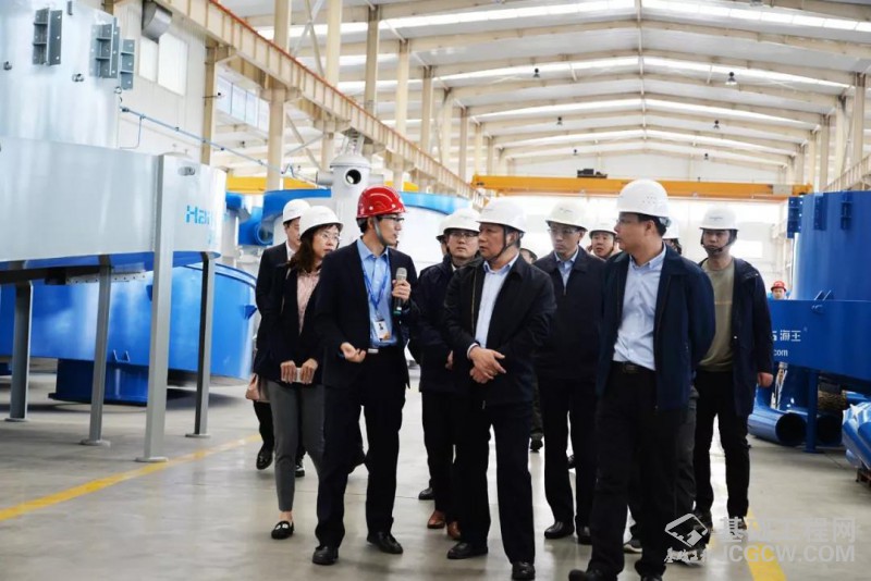 孙吉鹏董事长陪同于书良副厅长一行参观了海王公司产品装配车间和成品库,向领导们热情介绍了海王旋流器等产品在矿山、煤炭、电力、环保等行业的广泛应用和对产业技术进步的重要贡献,并围绕公司在实施创新引领发展、打造高端创新平台、进行国际品牌推广等方面所取得的成绩向于厅长做了详细汇报。