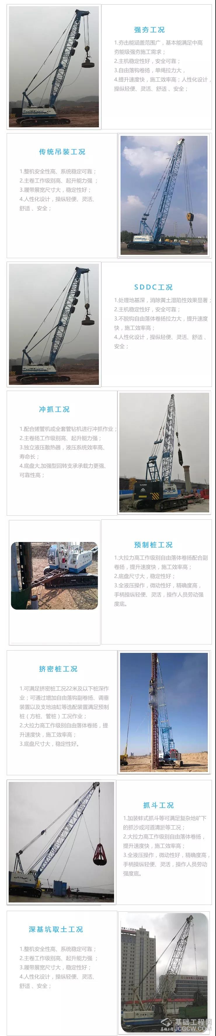 集吊装、基础施工多功能为一体的履带式起重机。该机具有高性能、高可靠性特点,造型美观,达到国内同类产品的先进水平。