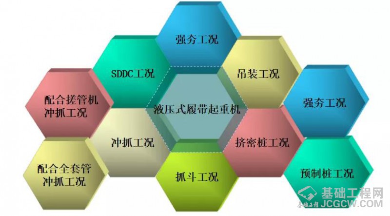 起重吊装、配套搓管机冲抓施工、柴油锤打桩(预制桩&灰土挤密桩)、深基坑取土、SDDC、强夯等工况。