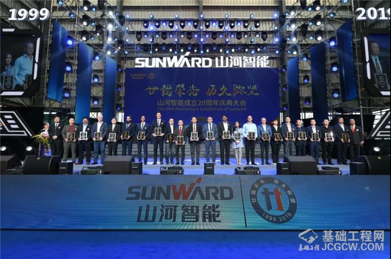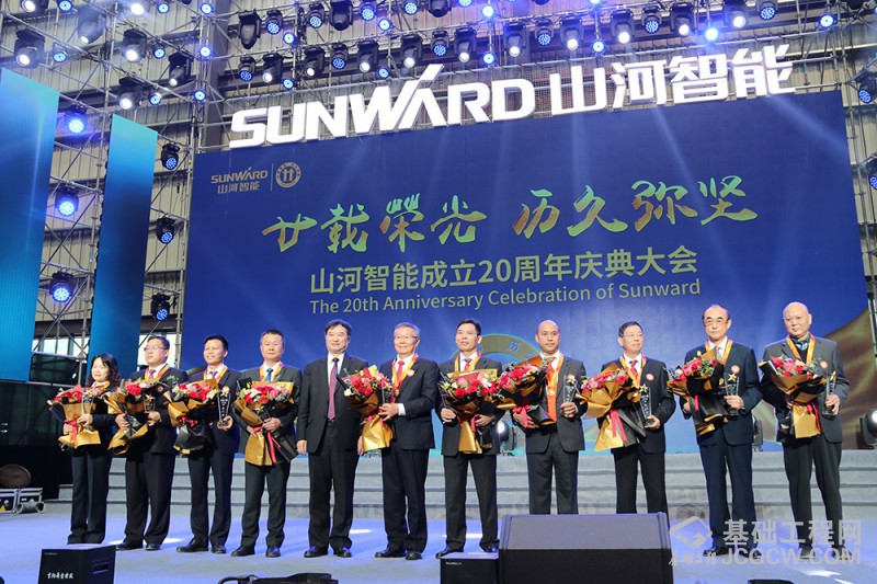 表彰大会上,山河智能对二十年来为公司作出突出贡献的11位功勋人物,40名金牌客户, 21家战略经销商, 20家同心供应商进行了隆重表彰,对他们的奉献和敬业予以了充分肯定。
